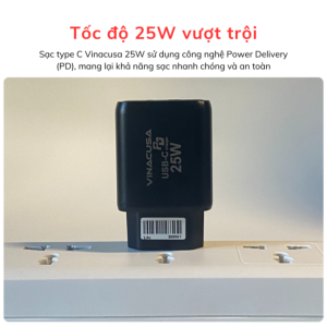 Củ sạc nhanh cho điện thoại PD 25W VINACUSA V2511B quick charger USB type C 2 cổng ra đa năng