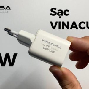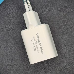 Củ sạc nhanh cho máy tính điện thoại GaN PD 33W VINACUSA V3311W quick charger USB type C – 2 cổng ra đa năng