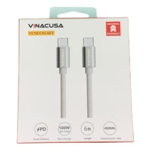 Dây cáp sạc VINACUSA 2 đầu Type C 1.83m VCNCC01-6FT cho điện thoại máy tính Macbook màu trắng chống nhiễu